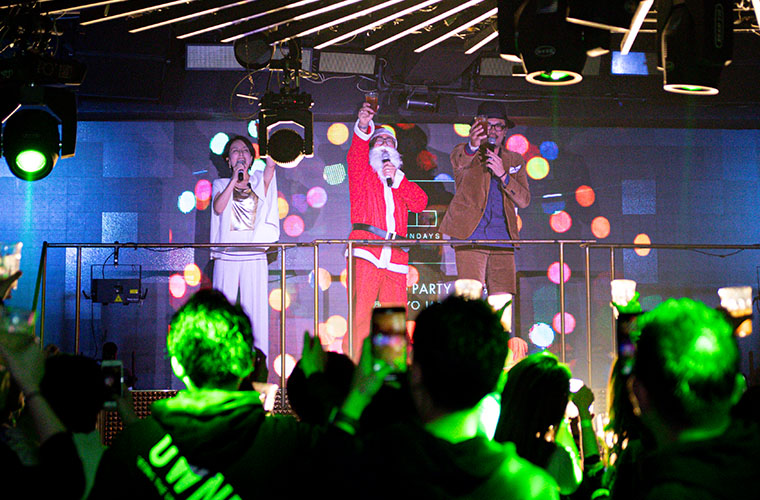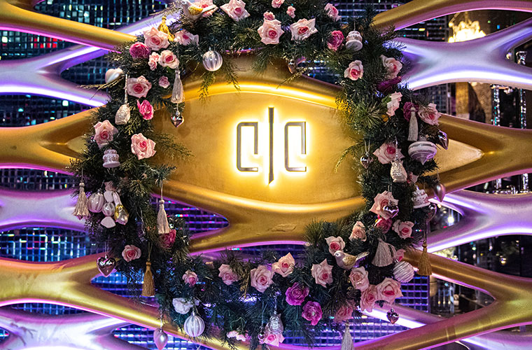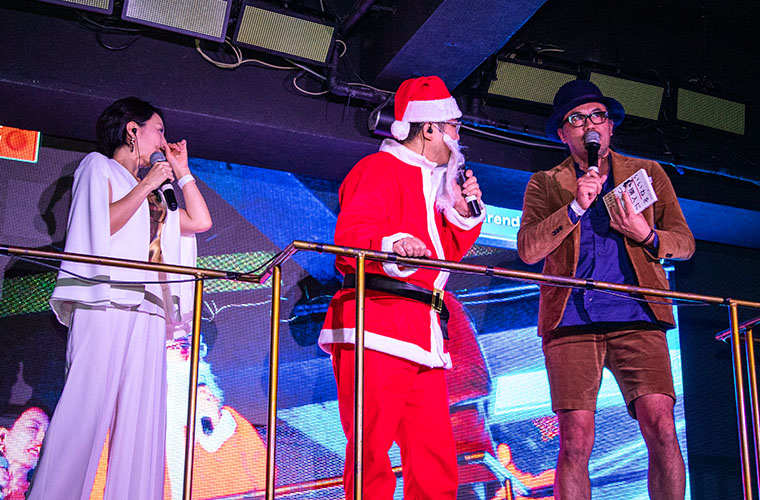 煌びやかなELE TOKYOのエントランスを越え、地下への階段を降りれば、華やかなクリスマスカラーの照明で染められたフロアが来場者を出迎えます。