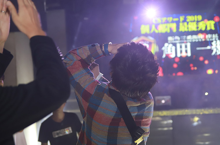 駆け寄るスタッフたちと歓声に揉まれて田口 裕一朗の目に思わず滲む涙。