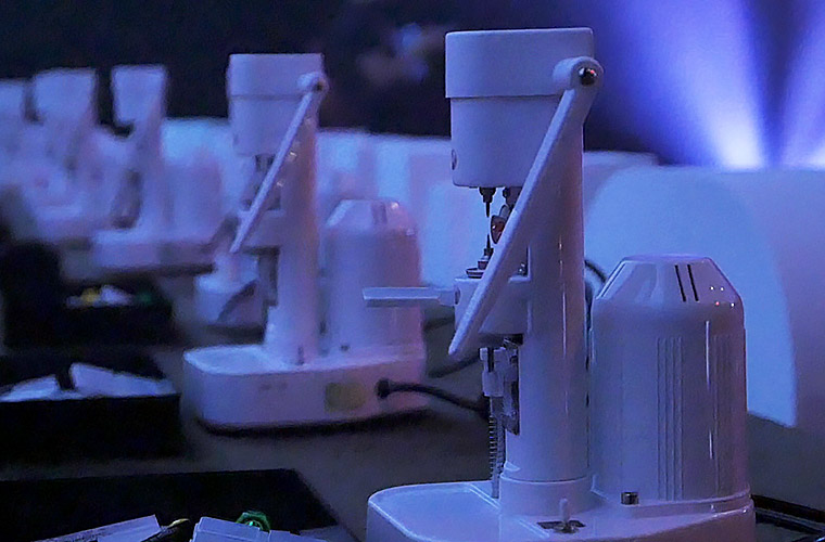 15分という制限時間はあっという間に過ぎ、出来上がったリムレスフレームは審査員へと手渡されます。