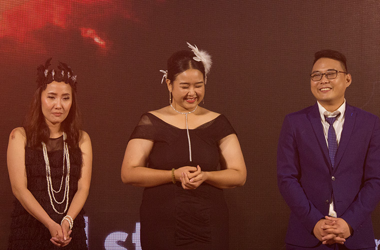 ドレスコードに合わせて華やかに着飾っていたのは、表彰を受けた3名だけではありません。個性豊かにドレスアップしたOWNDAYS THAILANDのスタッフたちが一堂に会し、そのファッションセンスを見せつけ合う光景はまさに圧巻でした!!