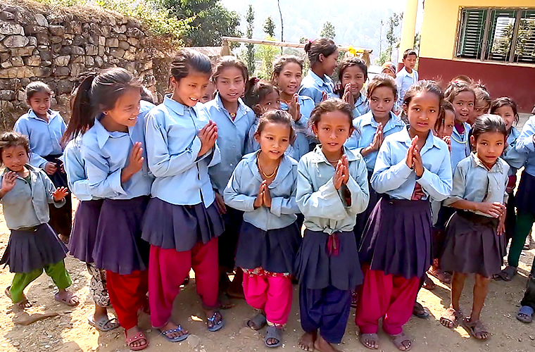We reached the school after two hours’ drive. Many children were there waiting for us. As soon as we got out of the car, the children greeted us in a loud, cheerful “Namaste!” with their hands placed together in front of the chest. We noticed many of them in worn-out clothes and were barefooted.