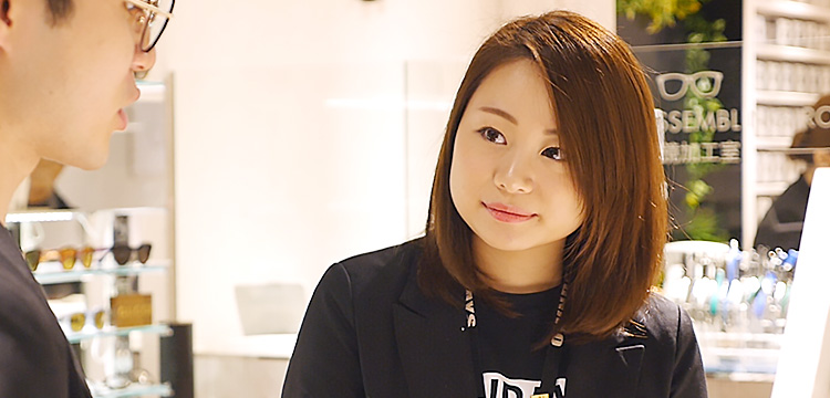 最初はメガネ屋に就職するとは思ってもいませんでしたが、実際にOWNDAYSの店舗を見に行ったときに、働いているスタッフの方がとても楽しそうに働いていたことが、OWNDAYSに決めることになった理由ですね。