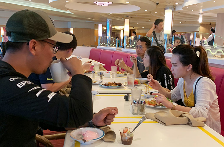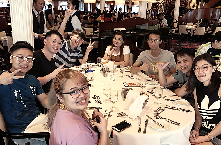 It was our last full day on the cruise so we spent the morning taking numerous photos at various parts of the cruise. Everyone donned the OWNDAYS t-shirt and tried doing different poses for the photo taking session. It was a great team-bonding time that allowed us to discover the fun-loving side of one another which might otherwise rarely be seen at work. We cheered in unity, “Yeah! Yeah! OWNDAYS!!!” before ending the session.