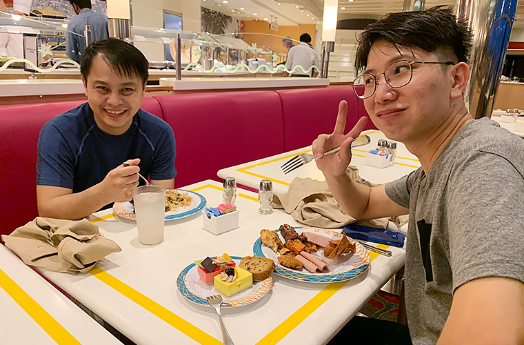 Some of us woke up before the crack of dawn and headed to the roof level of the cruise to catch the sun rise. It was an amazing sight, watching the sun gradually peeping out from the far horizon. At 7:00am, everyone gathered at the Windjammer restaurant for breakfast and we were spoilt for choice with the wide buffet spread.