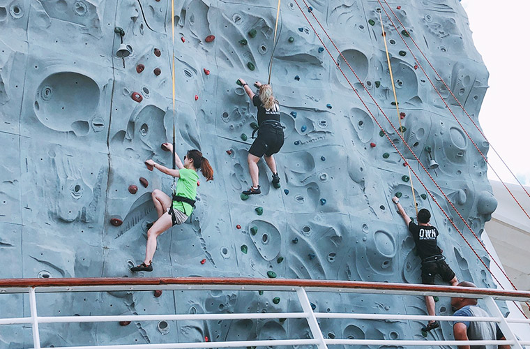 After lunch, we tried out rock climbing. The rock-climbing wall was a steep forty feet above the deck and it was challenging for us since none of us had any prior experience in this. Nevertheless, the view from above was breath-taking and definitely worth every step we took! One of us eventually made it to the top of the wall, marking it a great end to our maiden attempt at the sport.